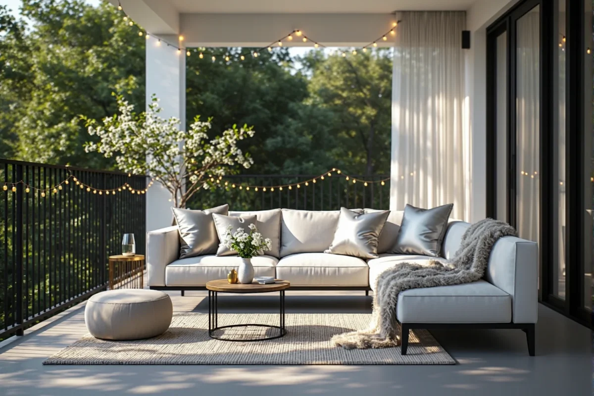 Jak urządzić balkon w stylu glamour z oświetleniem LED w kolorze złota i srebra?