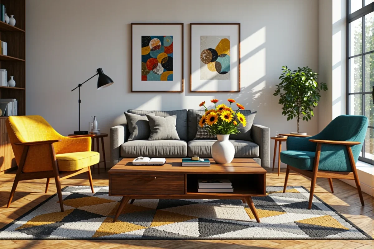 Nie musisz mieszkać w muzeum designu, by cieszyć się stylem retro. Najlepsze efekty uzyskuje się poprzez łączenie starego z nowym. Stolik kawowy retro świetnie zaprezentuje się w zestawieniu z minimalistyczną, szarą sofą. Dodaj do tego nowoczesny dywan w geometryczne wzory, kilka roślin (np. monsterę lub fikus) oraz oświetlenie z mosiężnymi akcentami, a stworzysz modny i przytulny salon w stylu mid-century modern.