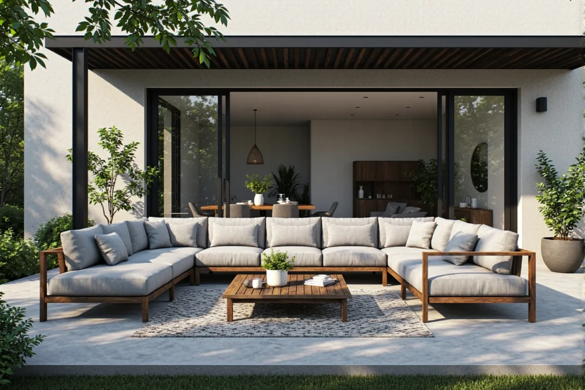Nowoczesny taras musi być elastyczny. Jednego dnia potrzebujemy dużej sofy do popołudniowej drzemki, innego – konfiguracji sprzyjającej rozmowie przy kawie. Tutaj z pomocą przychodzą systemy modułowe. Sofa składająca się z kilku niezależnych elementów pozwala na dowolne aranżowanie przestrzeni w zależności od potrzeb.